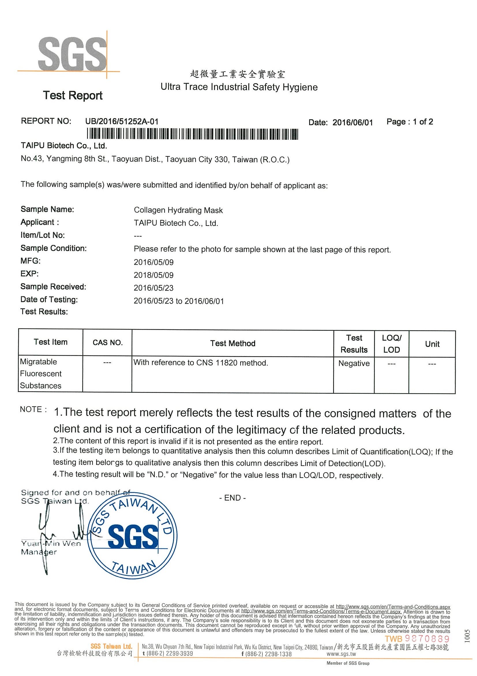 E&B 通過超微量工業安全實驗室遷移性螢光劑反應測試合格